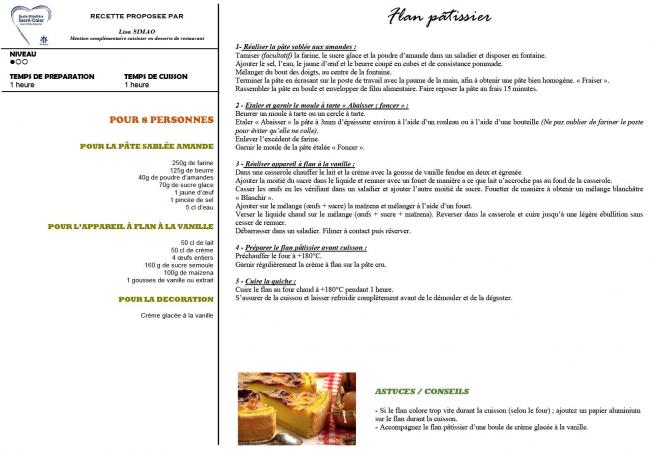 Aujourd'hui, c'est Lisa, en MCCDR, qui vous présente la recette du flan pâtissier.