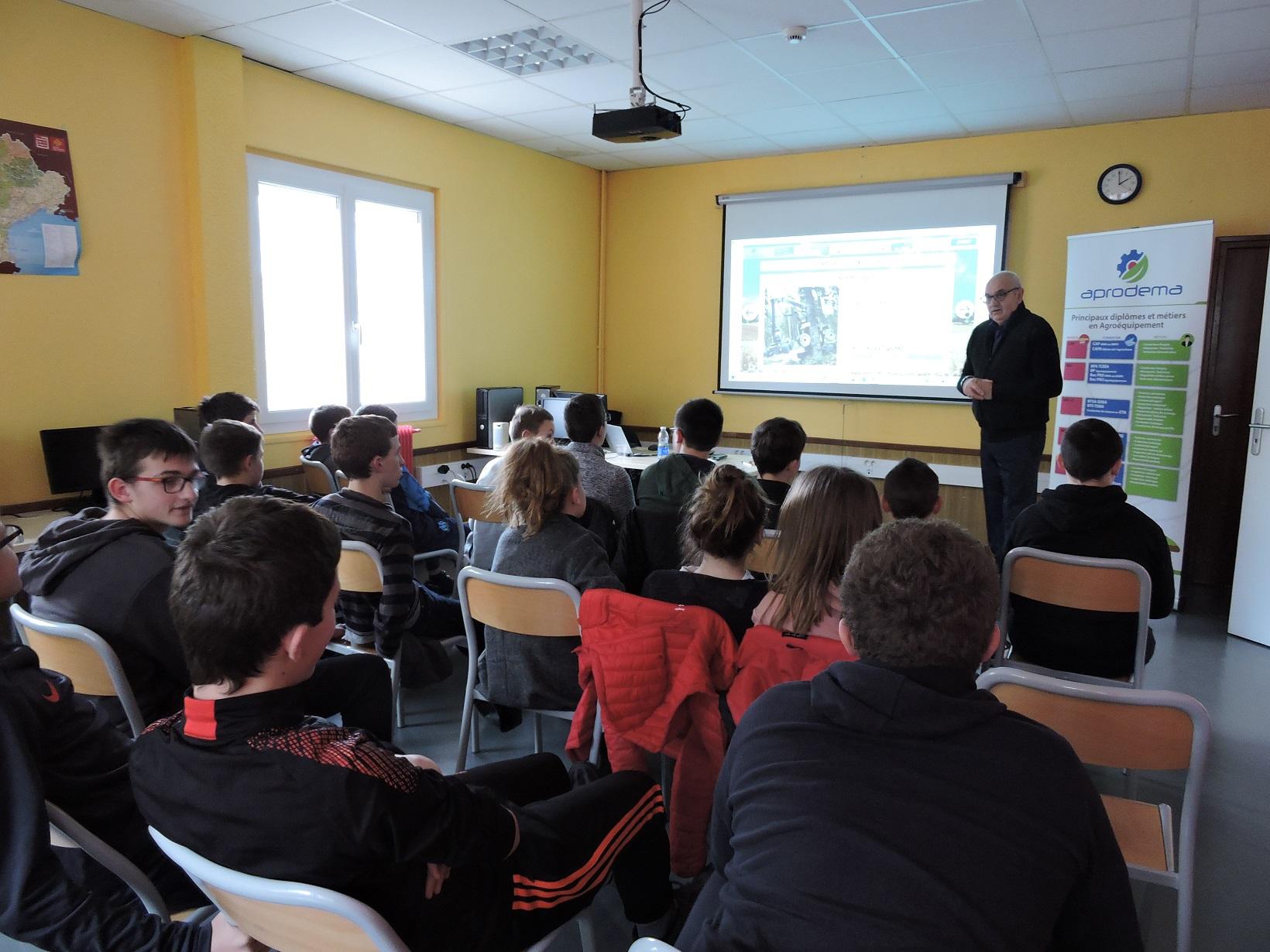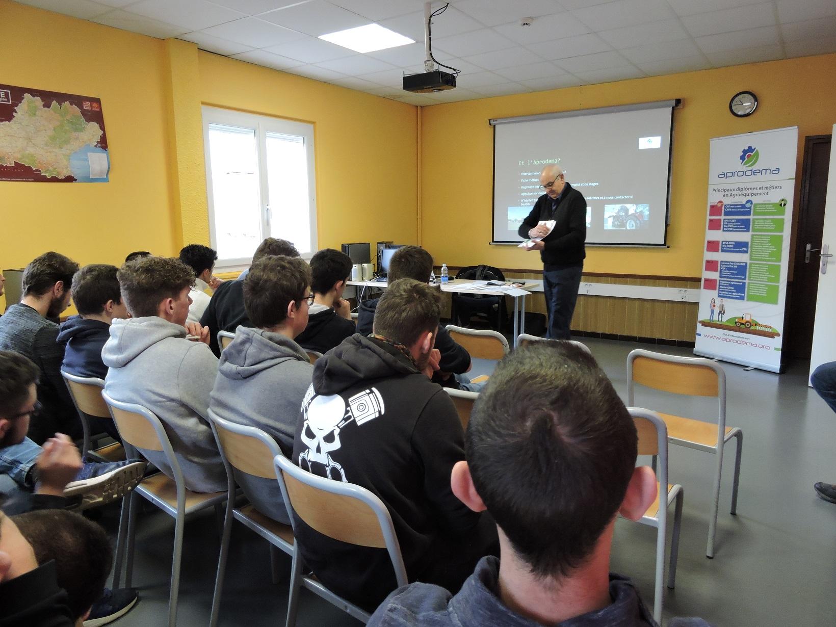 Echange entre les élèves et le délégué régional de l’APRODEMA pour les métiers de l’agroéquipement