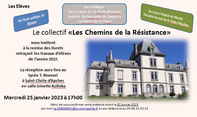 En effet, nous avons cette année quatre garçons de troisième qui travaillent avec nous sur le thème de l’engagement résistant dans le monde rural. Ils ont commencé la collecte des renseignements en vue de la journée de présentation collective du 3 juin prochain.