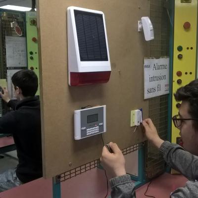 Les bac pro SN (Systèmes Numériques) ont montré leurs Travaux Professionnels lors de la journée portes ouvertes du lycée. Quelques exemples en photos avec la salle audiovisuel professionnel, une alarme incendie et son tableau, 2 alarmes anti-intrusion sans fil et filaire puis la salle audiovisuel multimédia, installés devant le home cinéma. Merci à Robin, Killian, Guillaume, Rémi et Quentin.