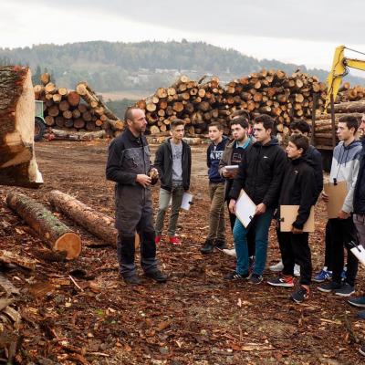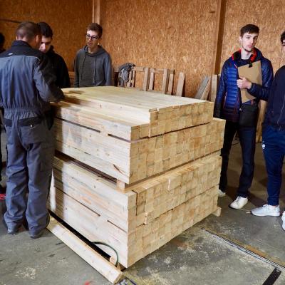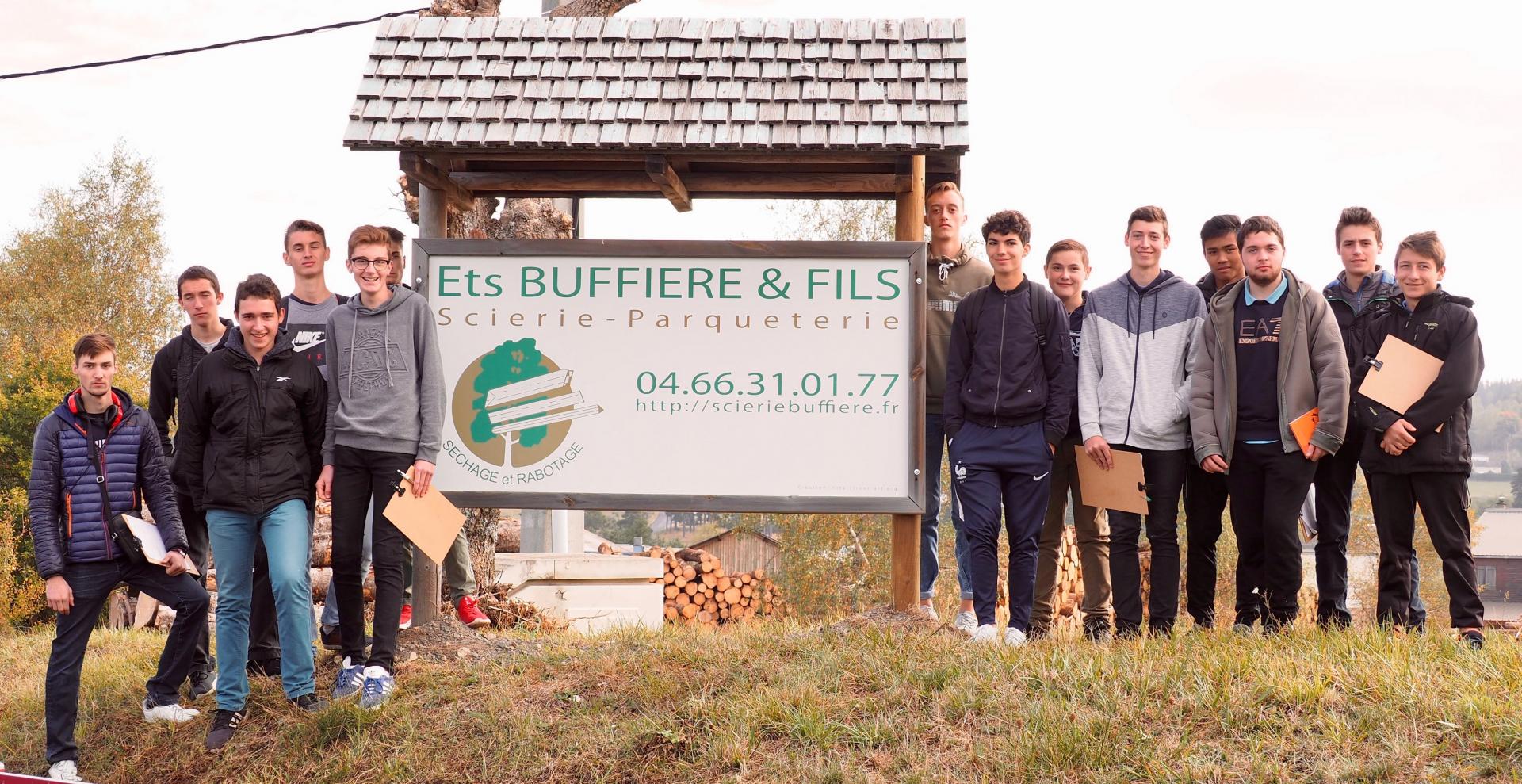 Les élèves de CAP et Bac Pro technicien menuisier agenceur et constructeur bois en visite auprès de la scierie Buffière de St Chély d'Apcher.