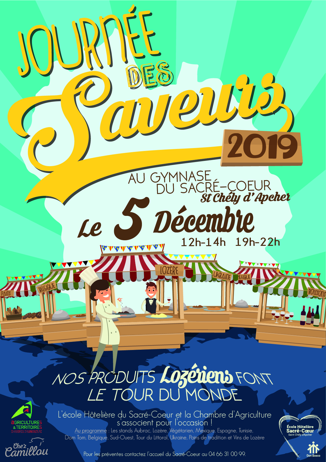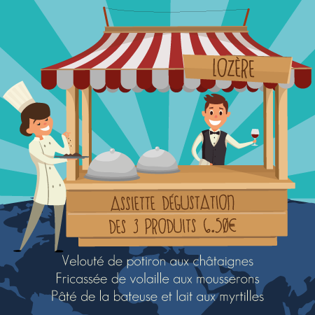 En partenariat avec l’association agriculture et territoire de Lozère, nos produits Lozériens font le tour du monde au travers des stands Espagne, Mexique, Tunisie, Belgique, Ukraine, DOM-TOM, Sud-Ouest, Tour du littoral, végétarien, Aubrac sans oublier la Lozère.