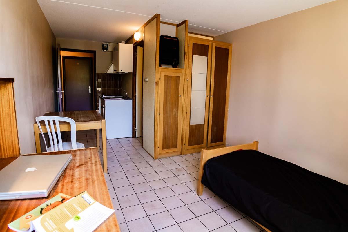 • Un campus de 120 studios équipés d’un coin cuisine, chambre, d’un espace de travail et d'un espace toilettes et douche.